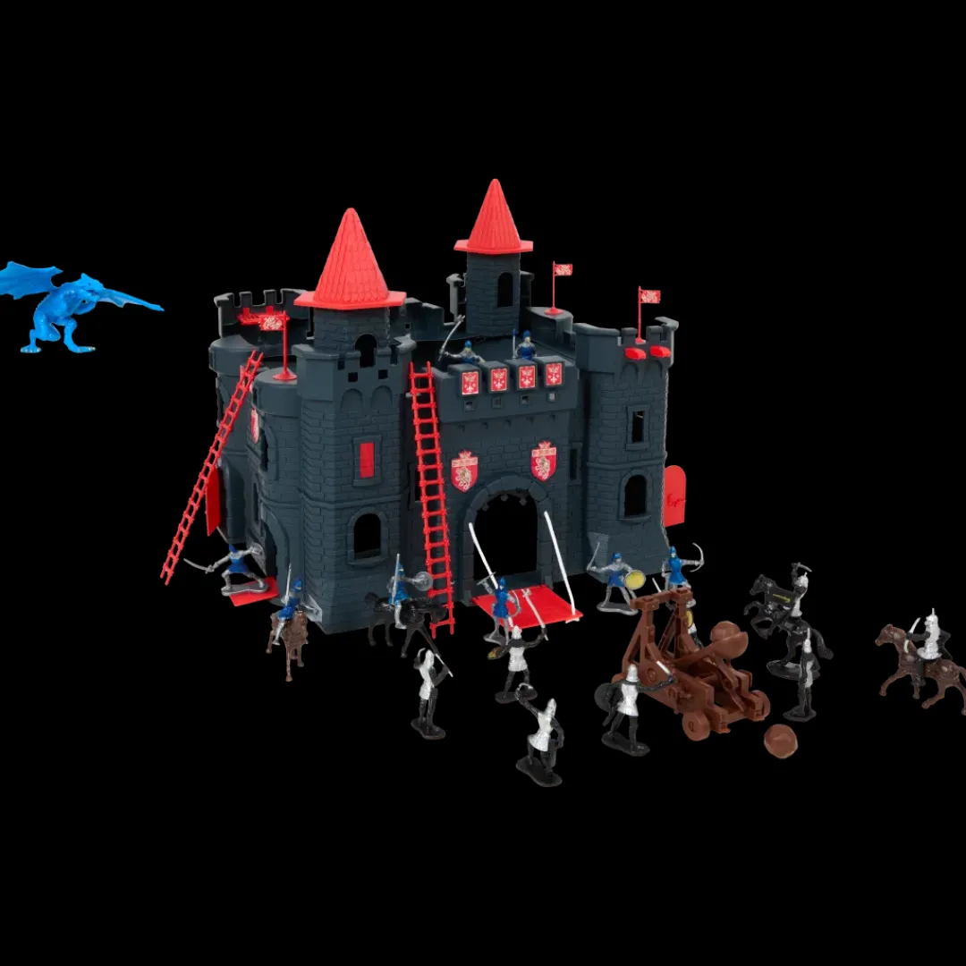 - Set bevat: een kasteel, 4 vlaggen, 2 ladders, 12 soldaten, 4 ridders, een steenwerpkatapult en een draak